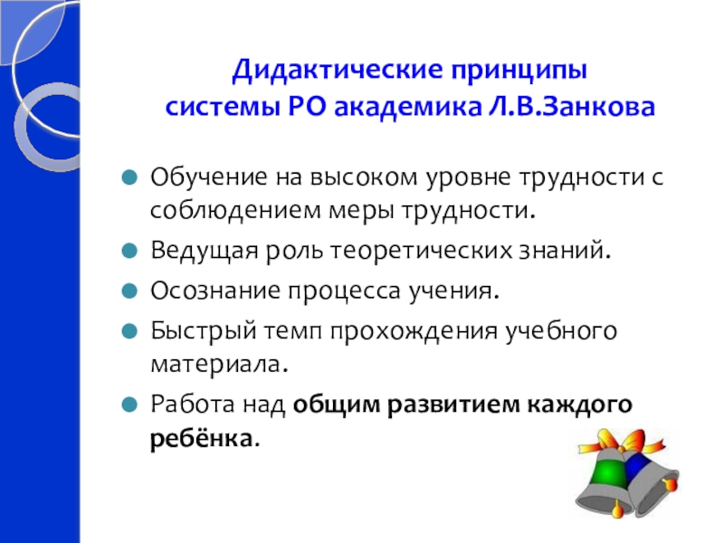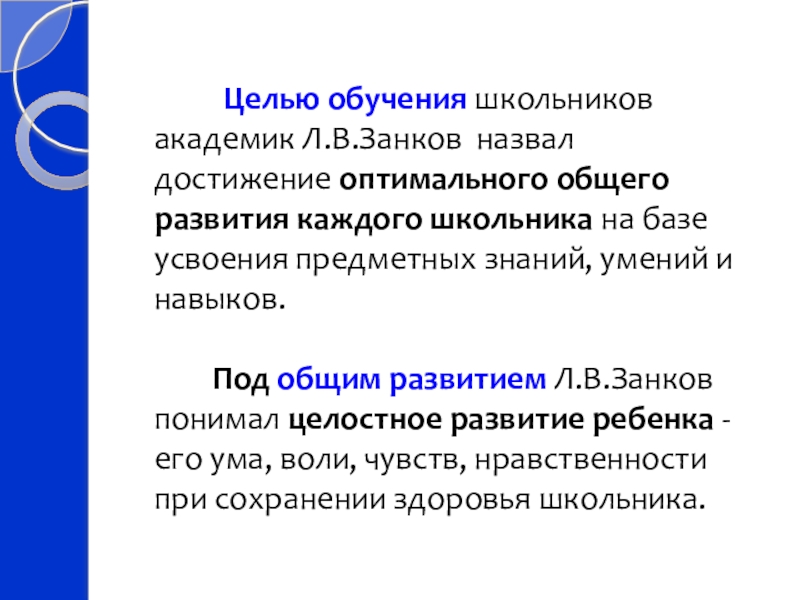 Слайд 3 Целью обучения школьников академик Л.В.Занков назвал достижение