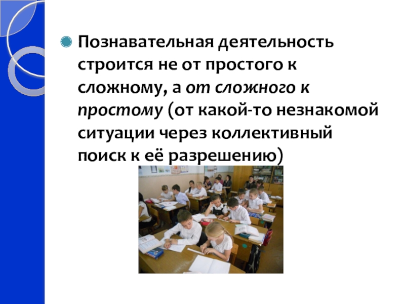 Слайд 7Познавательная деятельность строится не от простого к сложному, а от сложного