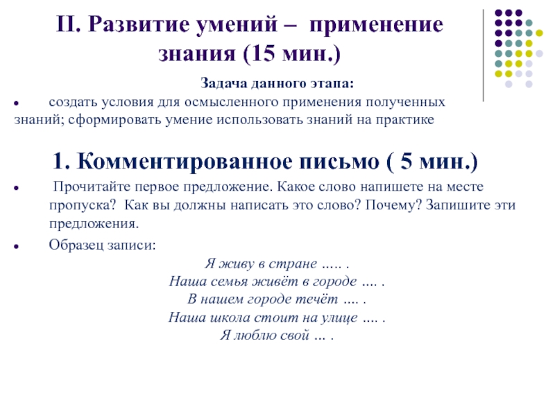 Слайд 15II. Развитие умений – применение знания (15 мин.)