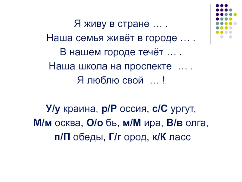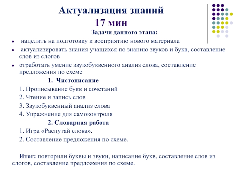 актуализировать знания учащихся по знанию звуков и букв, составление слов из слогов