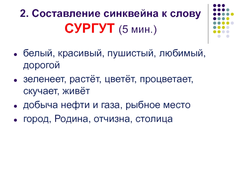 Слайд 172. Составление синквейна к слову СУРГУТ (5 мин.)