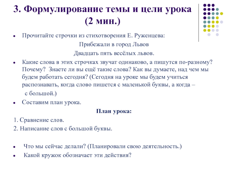 Какие слова в этих строчках звучат одинаково, а пишутся по-разному? Почему? Знаете ли вы ещё такие слова? Как вы думаете, над чем мы будем работать сегодня? (Сегодня на уроке мы будем учиться распознавать, когда слово пишется с маленькой буквы, а когда –