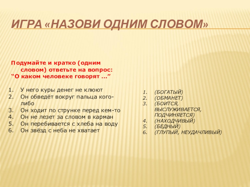 (БОИТСЯ, ВЫСЛУЖИВАЕТСЯ, ПОДЧИНЯЕТСЯ)