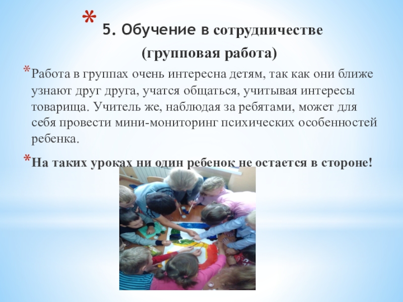 Слайд 7 5. Обучение в сотрудничестве (групповая работа)