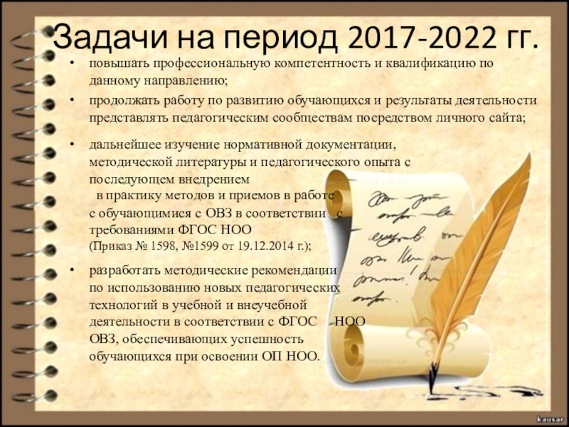 в практику методов и приемов в работе с обучающимися с ОВЗ в соответствии с требованиями ФГОС НОО (Приказ № 1598, №1599 от 19.12.2014 г.);