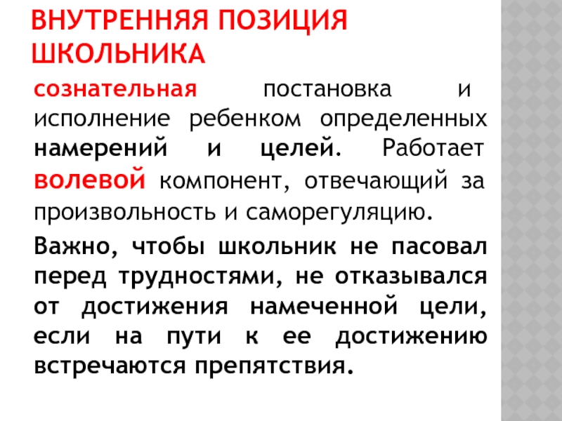 Слайд 30ВНУТРЕННЯЯ ПОЗИЦИЯ ШКОЛЬНИКА