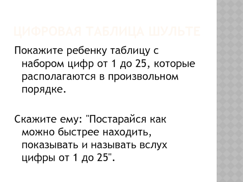 Скажите ему: "Постарайся как можно быстрее находить, показывать и называть вслух цифры от 1 до 25".