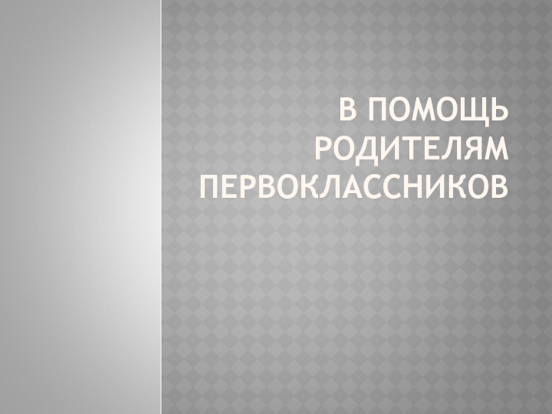 Слайд 1 В ПОМОЩЬ РОДИТЕЛЯМ ПЕРВОКЛАССНИКОВ