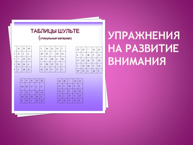Слайд 8УПРАЖНЕНИЯ НА РАЗВИТИЕ ВНИМАНИЯ