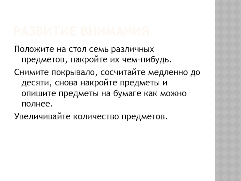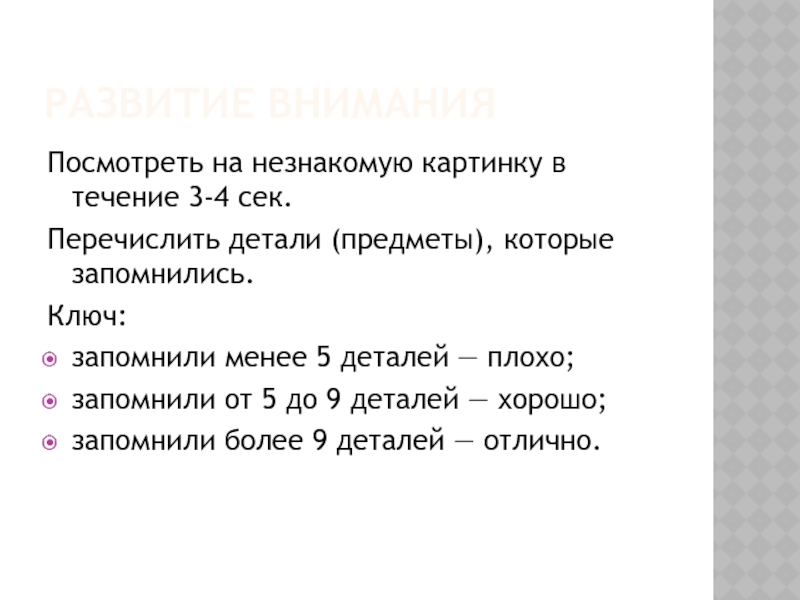 Слайд 27РАЗВИТИЕ ВНИМАНИЯ