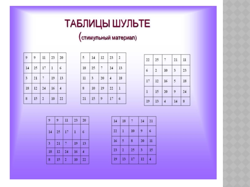 Слайд 9ЦИФРОВАЯ ТАБЛИЦА ШУЛЬТЕ