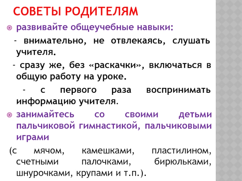 Слайд 6СОВЕТЫ РОДИТЕЛЯМ