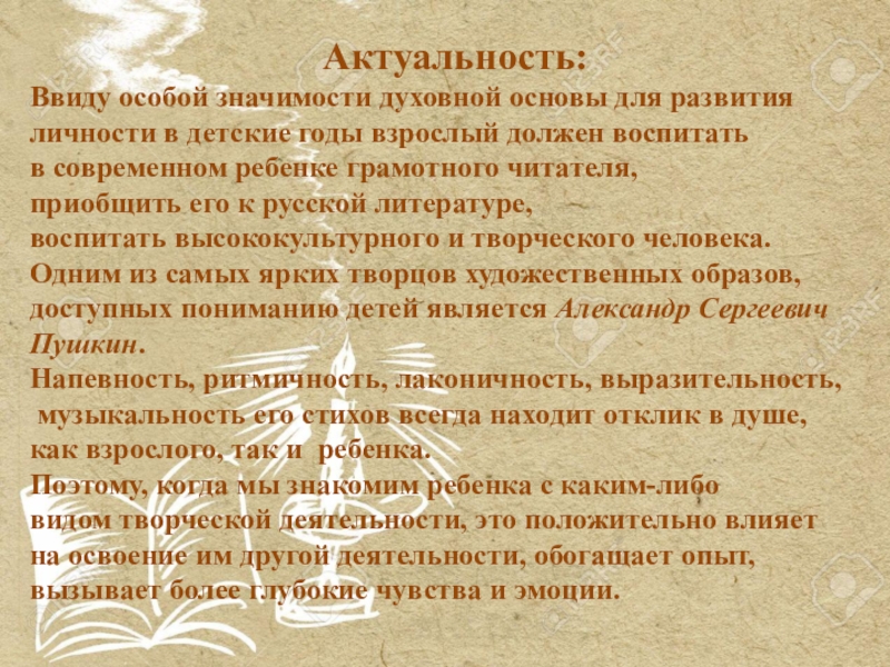 доступных пониманию детей является Александр Сергеевич Пушкин.