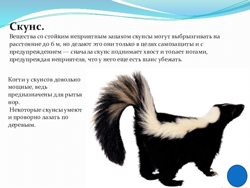 Когти у скунсов довольно мощные, ведь предназначены для рытья нор.