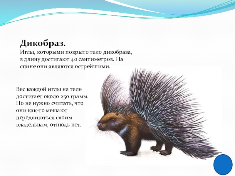 Вес каждой иглы на теле достигает около 250 грамм. Но не нужно считать, что они как-то мешают передвигаться своим владельцам, отнюдь нет.