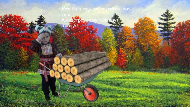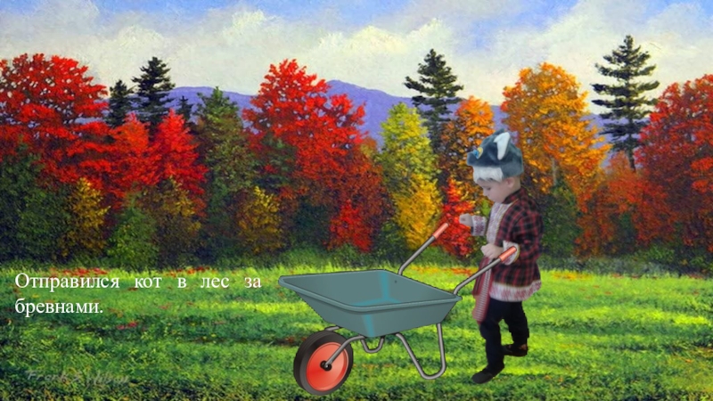 Слайд 12Отправился кот в лес за бревнами.