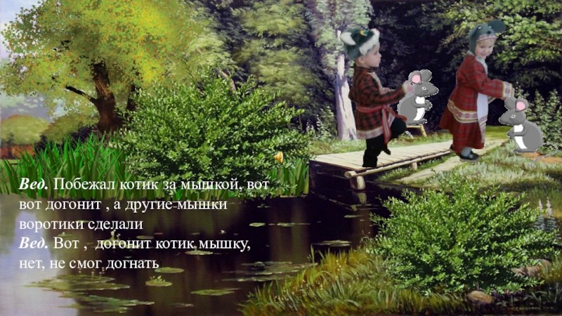 Слайд 7Вед. Побежал котик за мышкой, вот вот догонит , а другие
