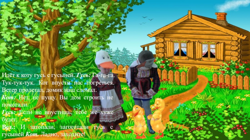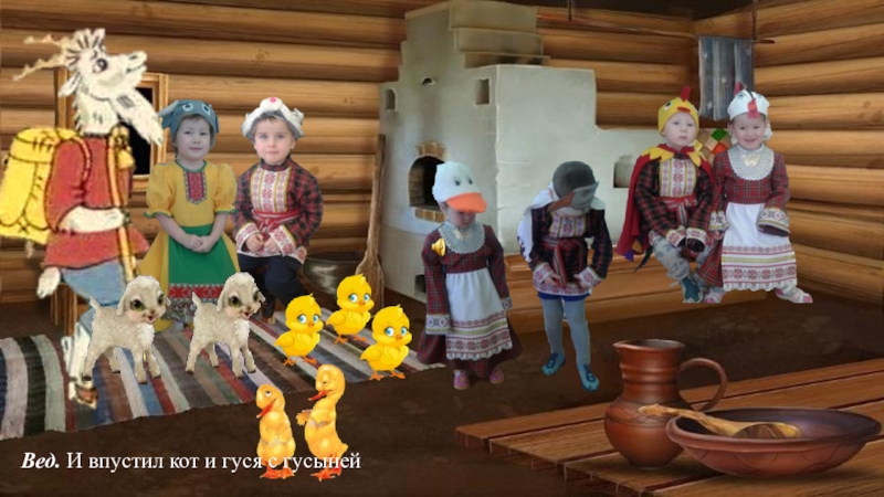 Слайд 32Вед. И впустил кот и гуся с гусыней