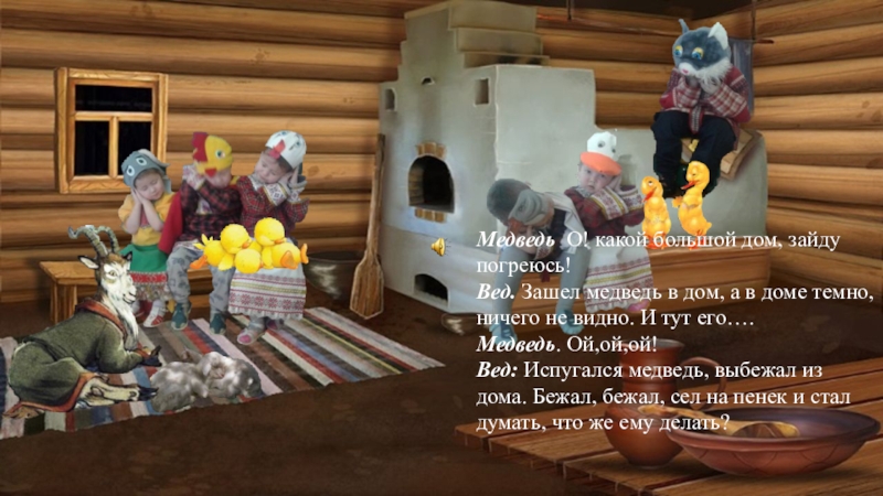 Слайд 35Медведь О! какой большой дом, зайду погреюсь!