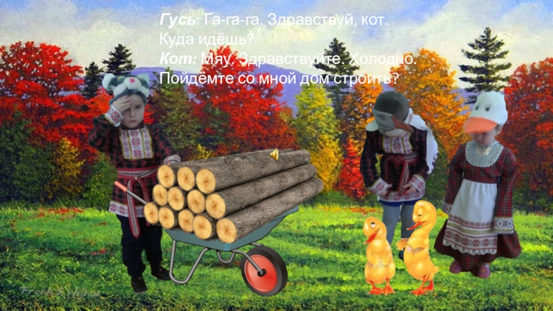 Слайд 21Гусь: Га-га-га. Здравствуй, кот. Куда идёшь?