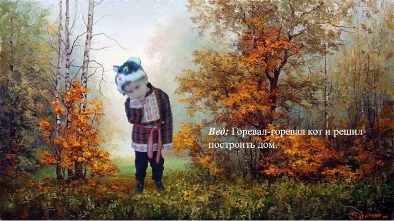 Слайд 10Вед: Горевал-горевал кот и решил построить дом.