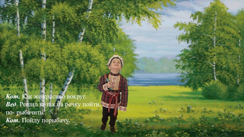 Слайд 2Вед. Жил-был кот. Всё лето он не знал хлопот. Идёт