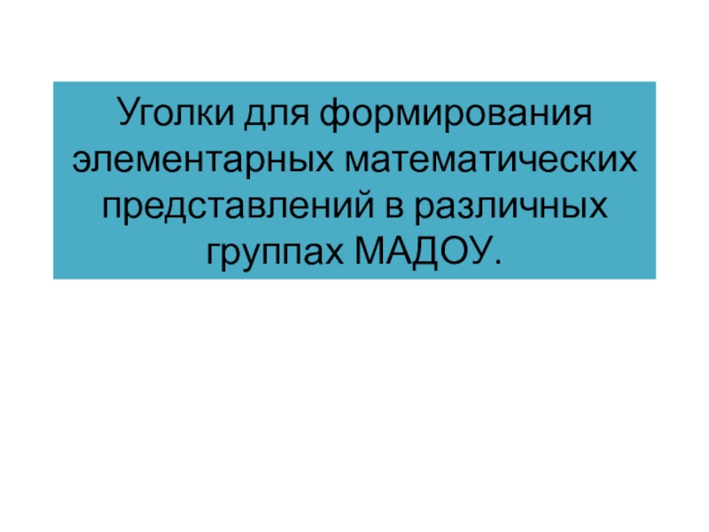 Слайд 1Уголки для формирования элементарных математических представлений в различных группах МАДОУ.