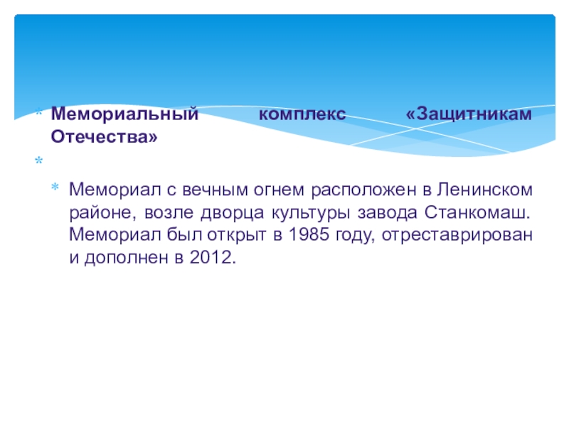 Слайд 16Мемориальный комплекс «Защитникам Отечества»
