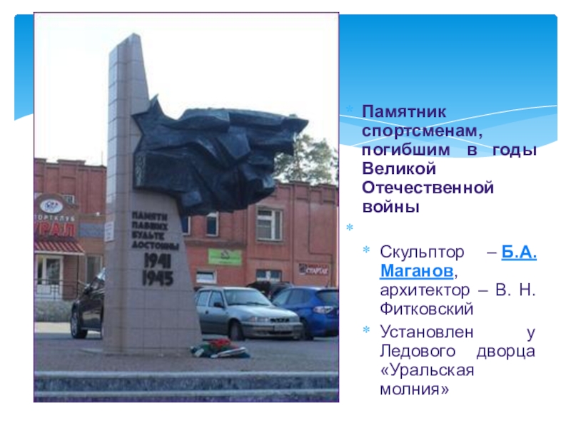 Слайд 20Памятник спортсменам, погибшим в годы Великой Отечественной войны