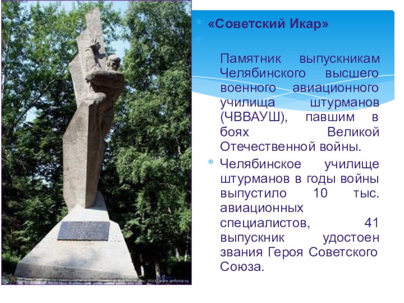 Памятник выпускникам Челябинского высшего военного авиационного училища штурманов (ЧВВАУШ), павшим
