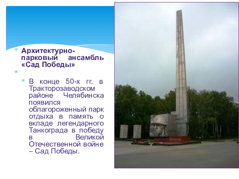 Слайд 13Архитектурно-парковый ансамбль «Сад Победы»