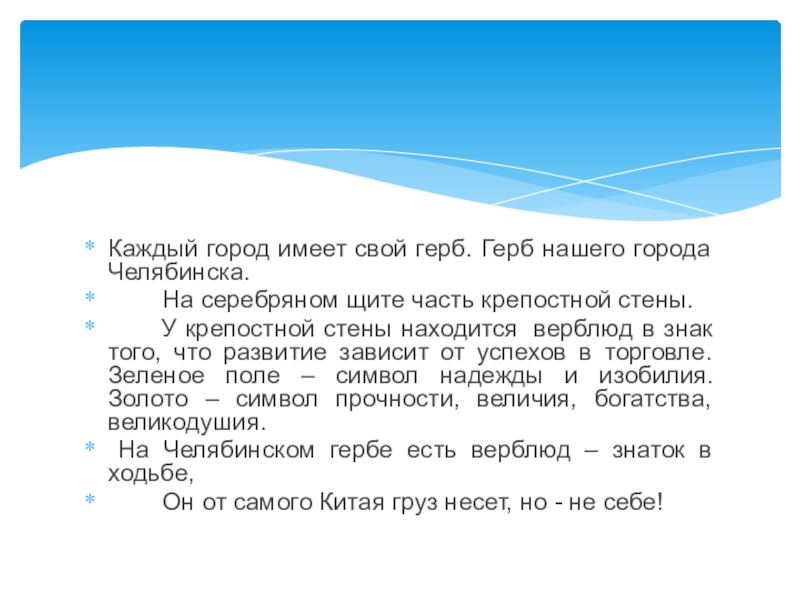 Слайд 4Каждый город имеет свой герб. Герб нашего города Челябинска.