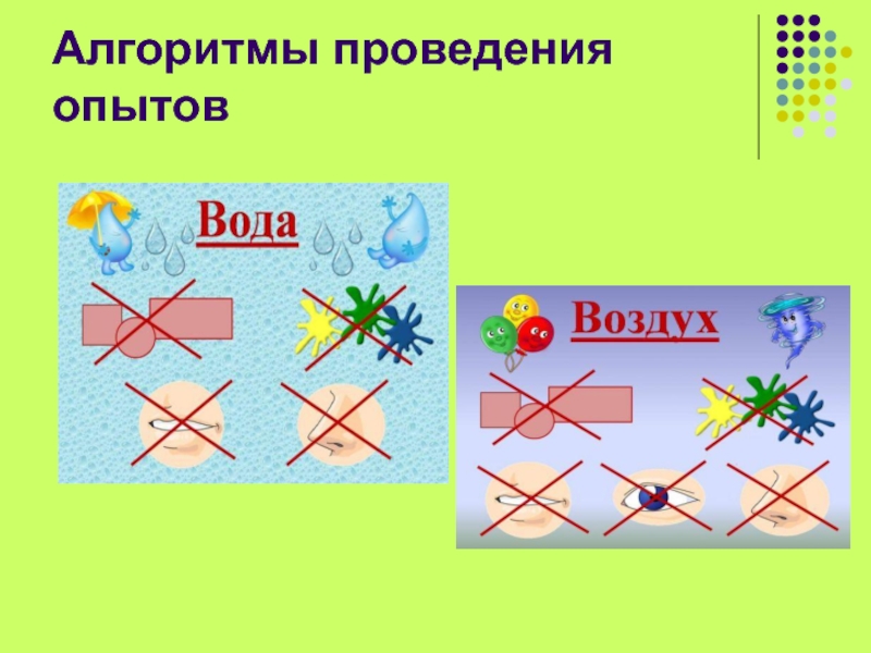 схемы, таблицы, модели с алгоритмами выполнения опытов;