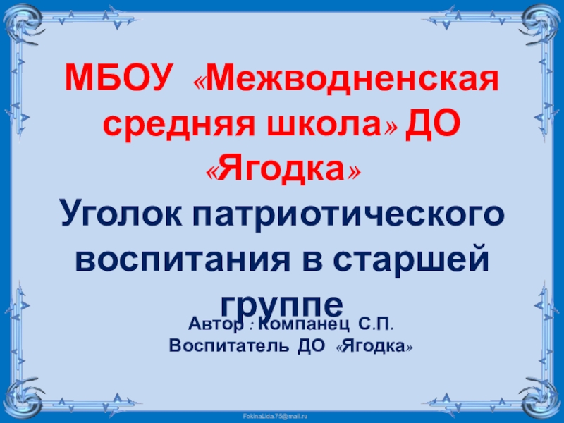 Слайд 1МБОУ «Межводненская средняя школа» ДО «Ягодка»