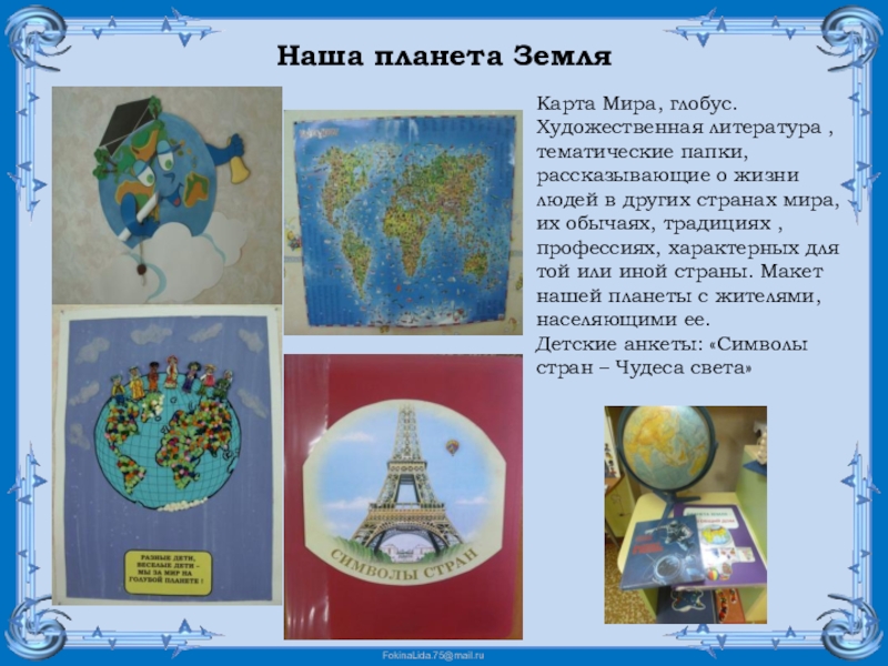 Карта Мира, глобус. Художественная литература , тематические папки,