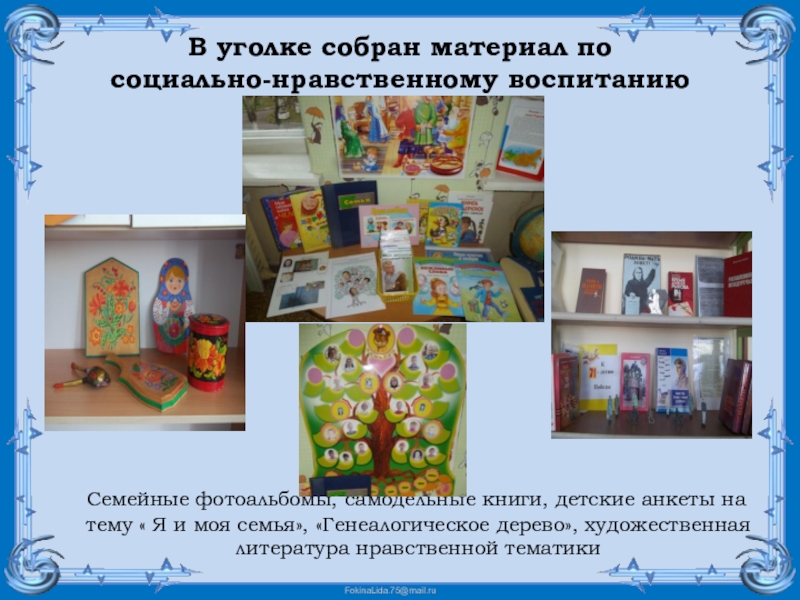 книги, детские анкеты на тему « Я и моя семья», «Генеалогическое дерево», художественная литература нравственной тематики