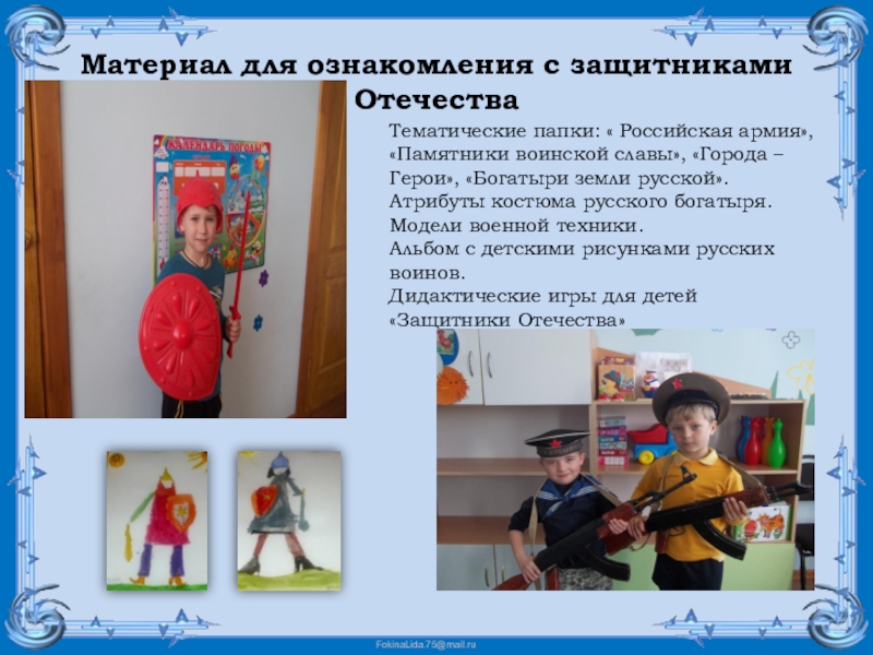 Слайд 9Материал для ознакомления с защитниками Отечества