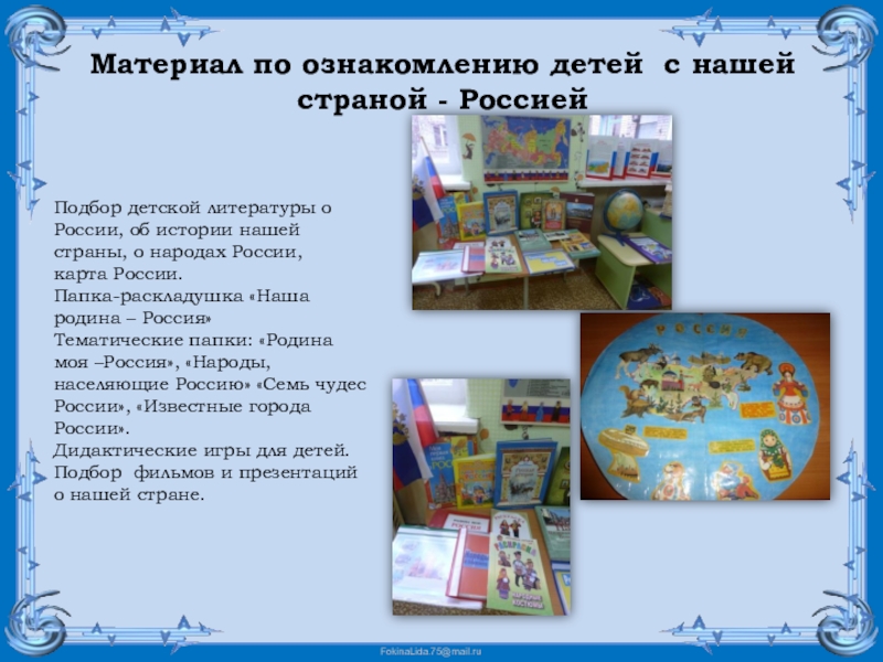 Слайд 8Материал по ознакомлению детей с нашей страной - Россией