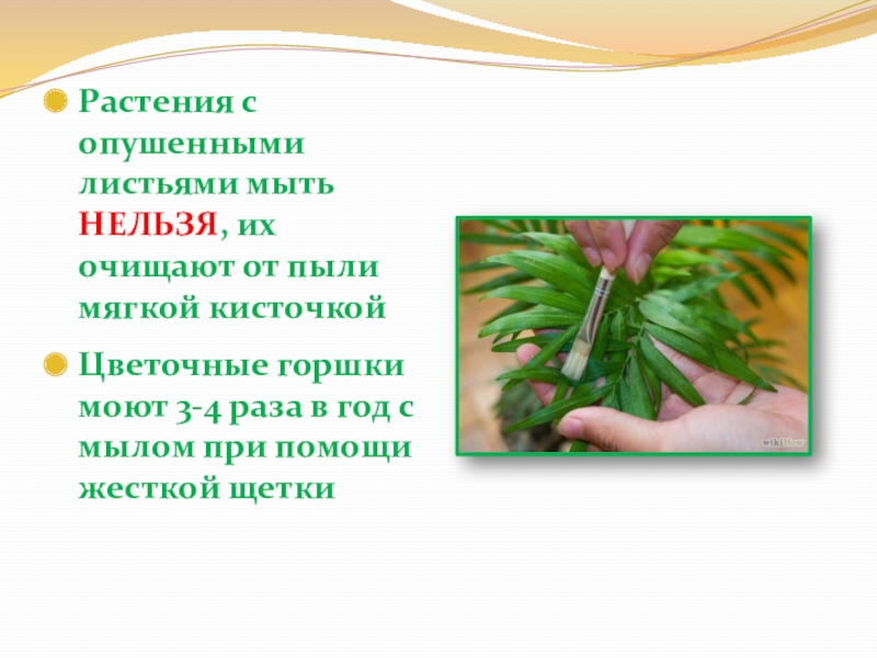 Слайд 10Растения с опушенными листьями мыть НЕЛЬЗЯ, их очищают от пыли мягкой