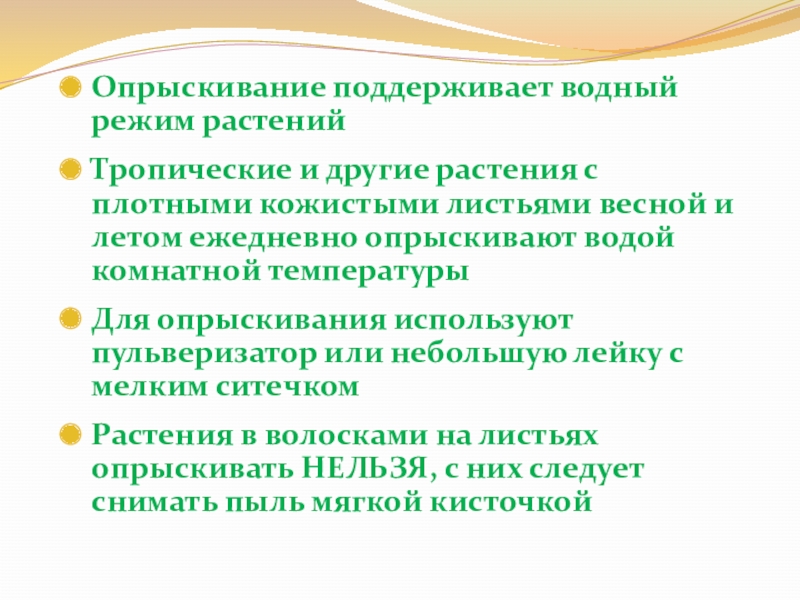 Слайд 6Опрыскивание поддерживает водный режим растений