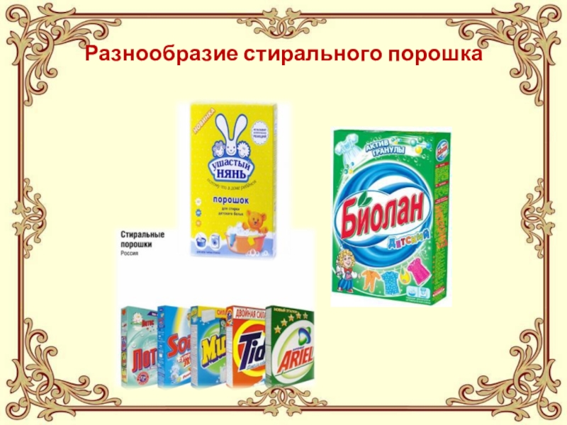 Слайд 3Разнообразие стирального порошка