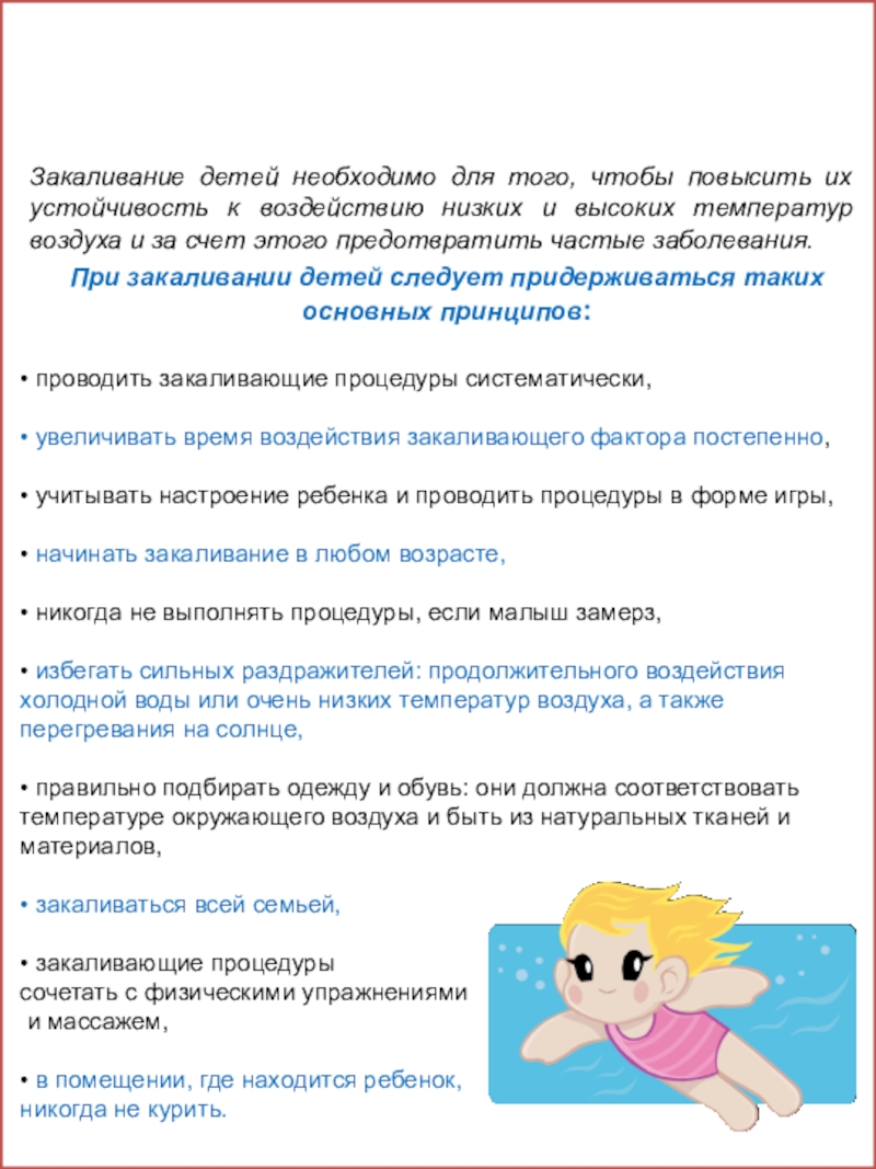 При закаливании детей следует придерживаться таких