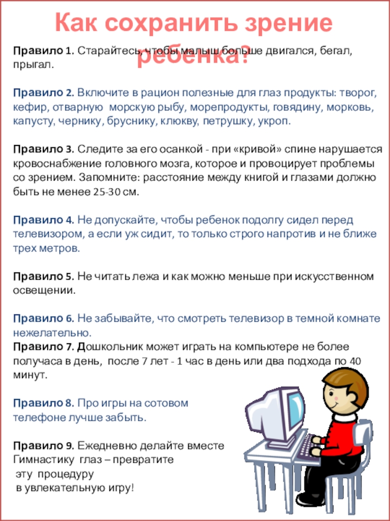 Чрезмерное обращение с компьютером может привести к ухудшению зрения ребенка, а так же отрицательно сказаться на его психическом здоровье. Особенно это опасно для застенчивых детей.