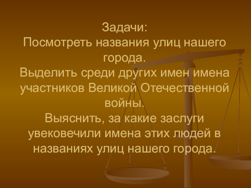 Выяснить, за какие заслуги увековечили имена этих людей в названиях улиц нашего города.