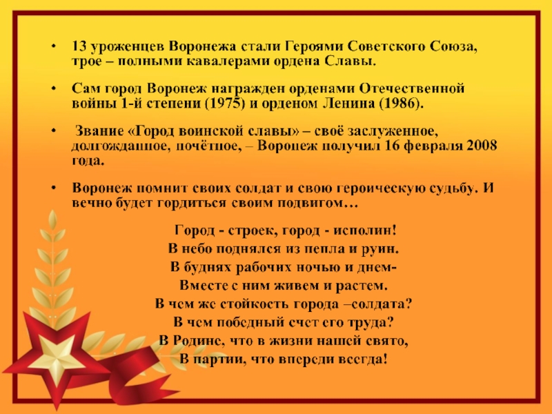 Презентация, доклад Улицы Воронежа,названные в честь героев ВОВ в Воронеже