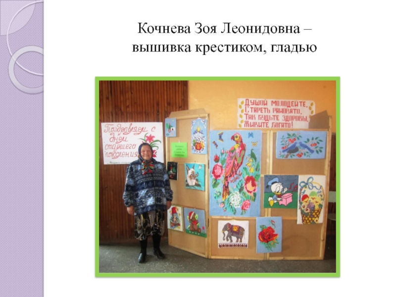 Слайд 4Кочнева Зоя Леонидовна – вышивка крестиком, гладью