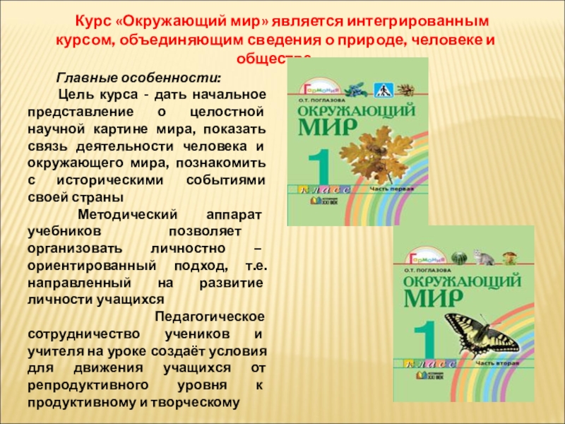 Цель курса - дать начальное представление о целостной научной картине мира, показать связь деятельности человека и окружающего мира, познакомить с историческими событиями своей страны