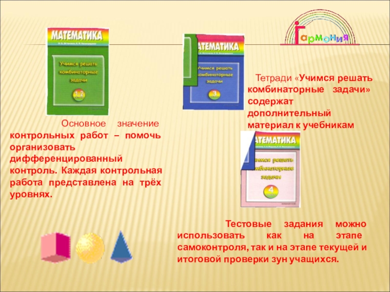 Тетради «Учимся решать комбинаторные задачи» содержат дополнительный материал к учебникам