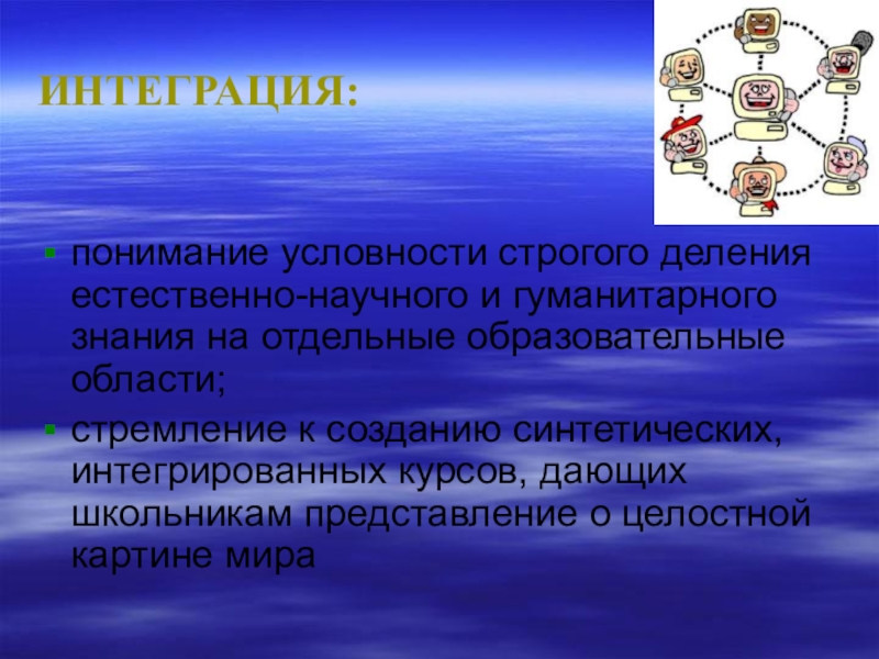 стремление к созданию синтетических, интегрированных курсов, дающих школьникам представление о целостной картине мира
