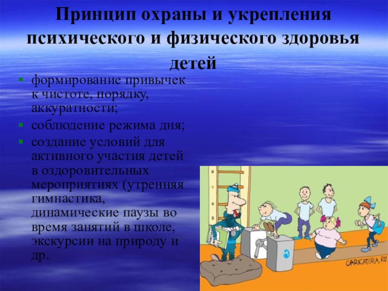 Слайд 14Принцип охраны и укрепления психического и физического здоровья детей